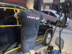 FecharTécnicas de aplicação de películas solares automotivas, corte, adaptação e acabamento profissional.